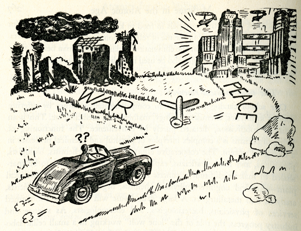 Sendak’s final illustration in the book makes vividly apparent the binary choice between nuclear utopia and nuclear oblivion that the authors believed humanity was facing. Some might argue that the drawing lacks nuance, but one could say the same of the authors’ characterization of the future of the atomic era.