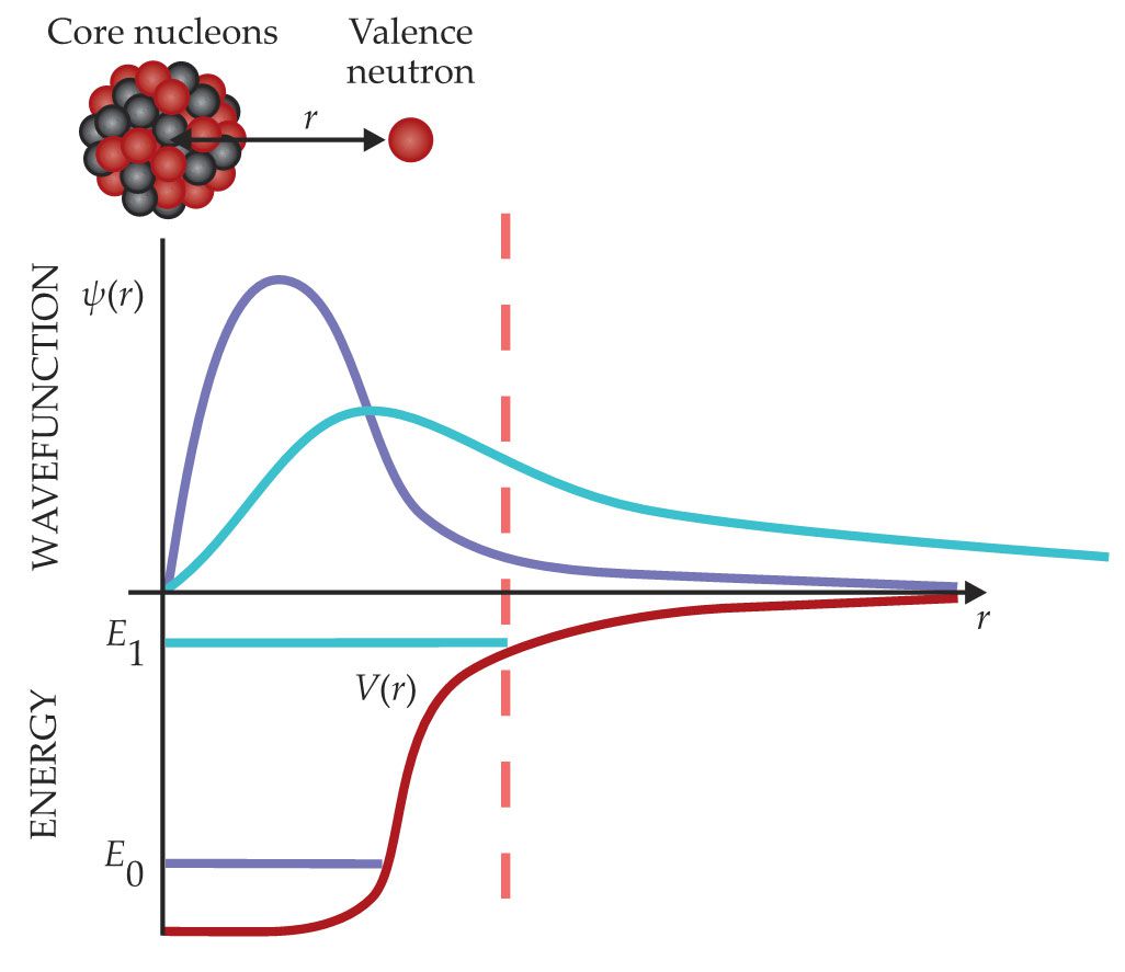 Nuclei are quantum systems, and to a large extent one can describe them by solving the nonrelativistic Schrödinger equation. In the so-called valley of stability, the likelihood of finding a valence neutron far from the center of mass of the nucleus is close to zero. But that is not the case for nuclei at the limits of stability. Figure