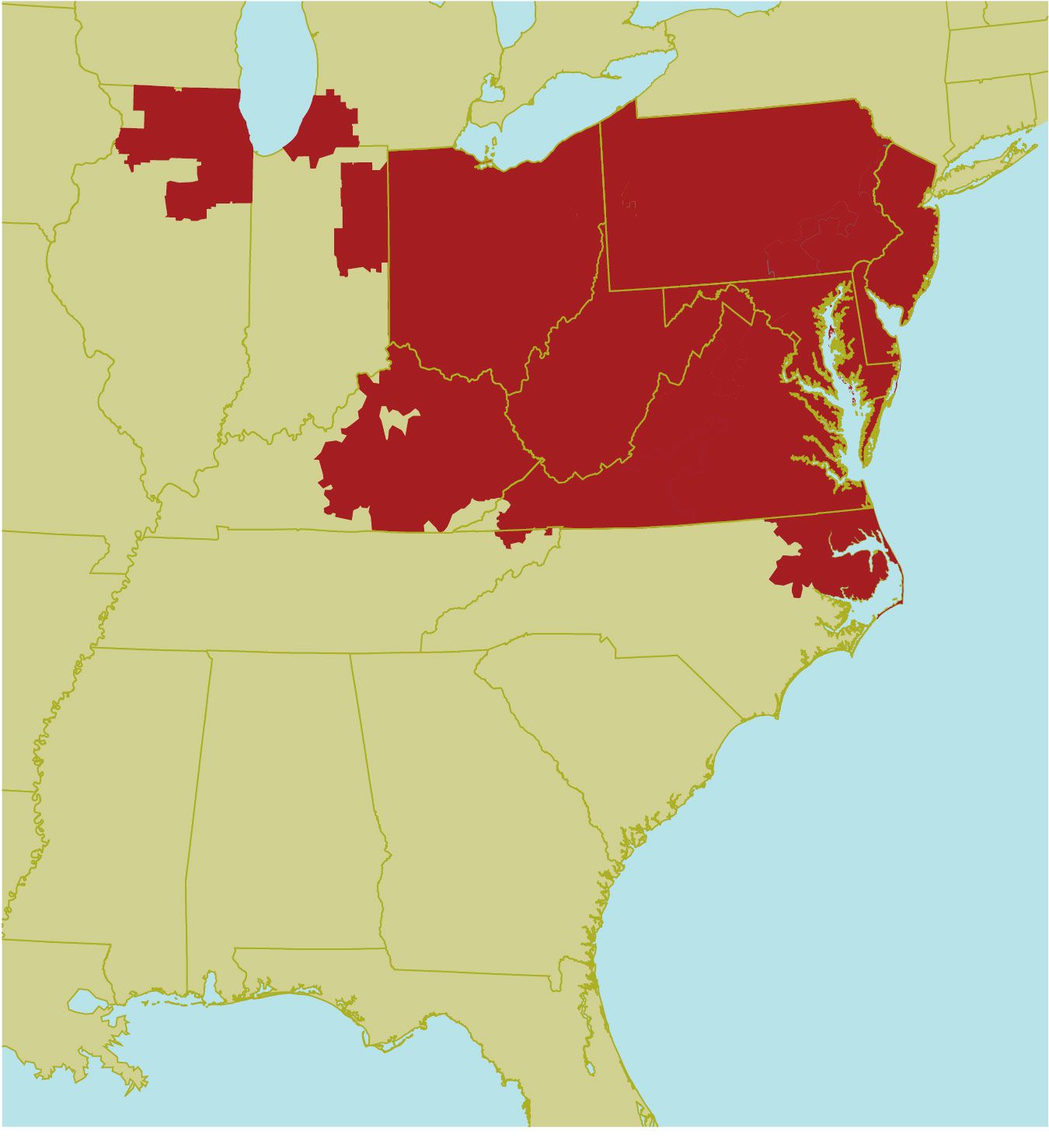 This map shows the territory served with electricity by the Pennsylvania– New Jersey–Maryland Interconnection. (Courtesy of PJM.)