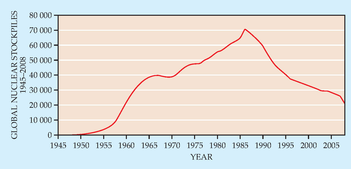 In 1986 a remarkable meeting between US president Ronald Reagan and Soviet general secretary Mikhail Gorbachev took place in Reykjavik, Iceland, at which they agreed on the revolutionary goal of eliminating all nuclear weapons. Figure 3 illustrates the subsequent downturn in the sizes of the global nuclear arsenals. But their vision to eliminate all nuclear weapons, though sincere and serious, remains unfulfilled.