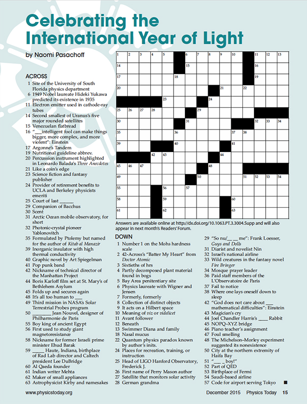 Crossword puzzle—Celebrating the International Year of Light