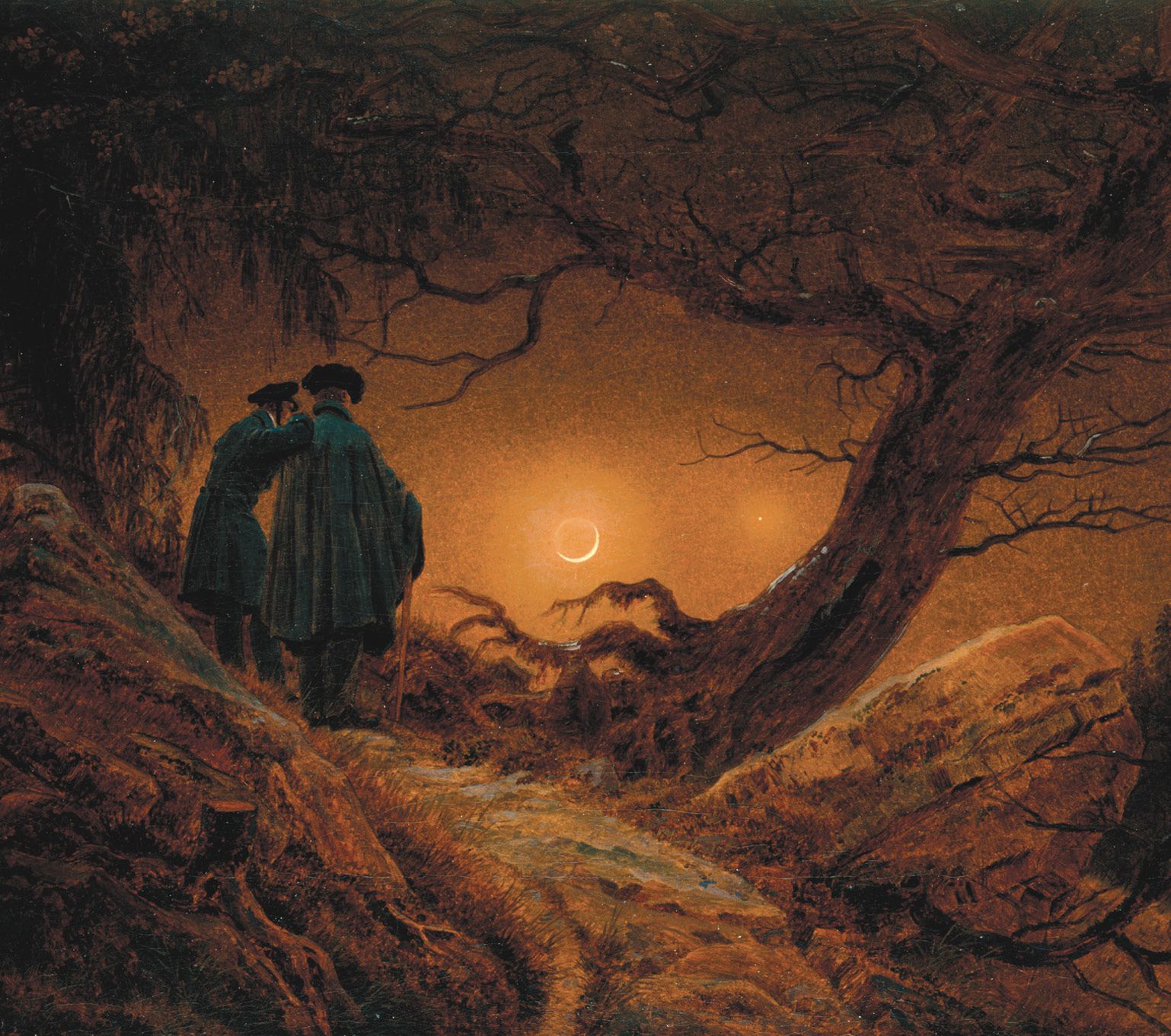 Two Men Contemplating the Moon, by Caspar David Friedrich, oil on canvas (1819), Dresden State Art Collections/public domain.