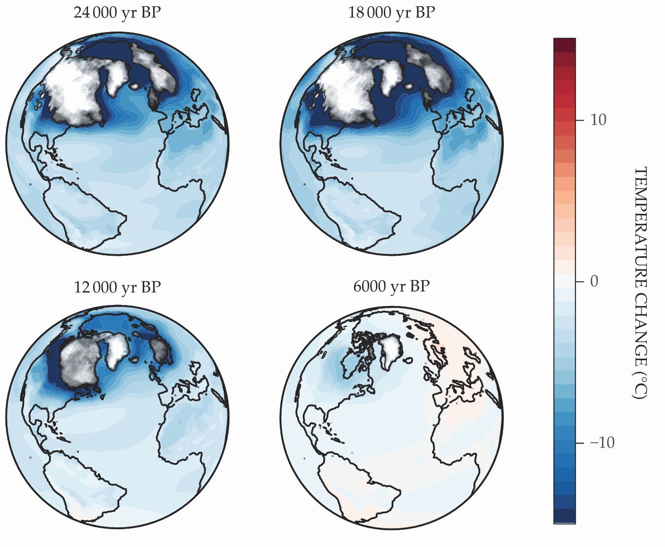 A big benefit of having a spatiotemporally resolved climate map is that the researchers can decompose it into its principal components of variance to see where temperature changes are correlated. In the past 24 000 years, warming has been concentrated in the northern latitudes—in northern Europe and present-day Canada—where glaciers dominated the landscape at the time of the Last Glacial Maximum and have retreated the most since then. In fact, more than 90% of the global temperature variance is described by that Arctic-dominated mode, which in turn is almost perfectly correlated with atmospheric greenhouse gas levels and glacial extent.