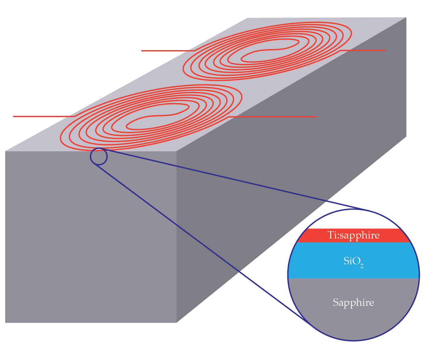 The spiraling 8-mm-long waveguide in a titanium:sapphire laser. The longer the waveguide, the longer the light interacts with the Ti:sapphire and can be amplified. (Adapted from ref 1.)