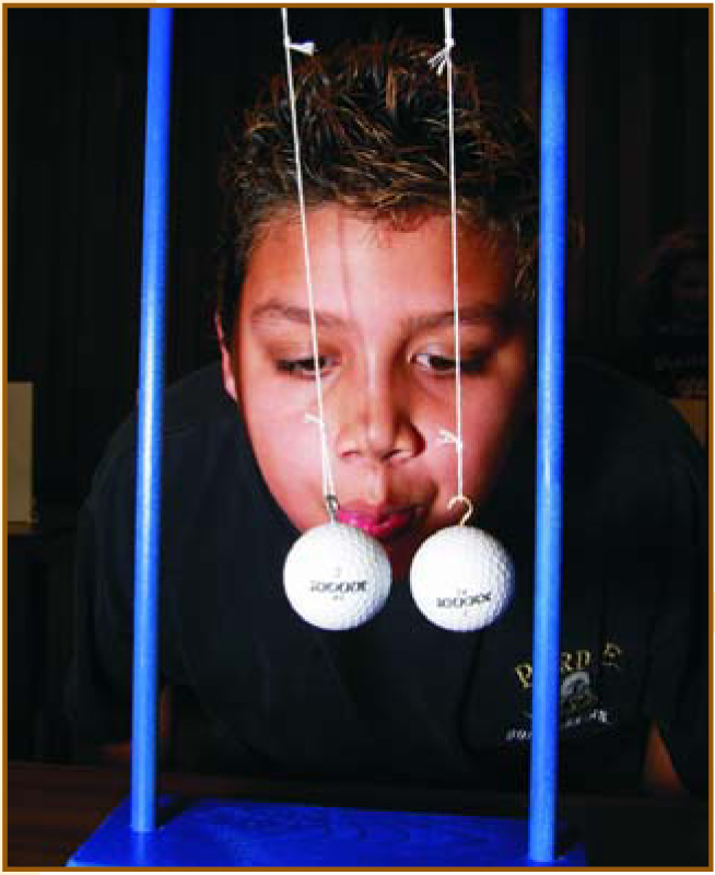Purdue University’s physics road show includes “What happens to the balls when you blow on them?”