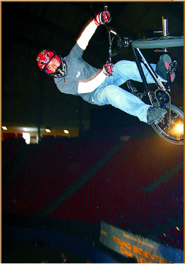 Bikers and skaters were rigged with devices to measure their acceleration as part of the Discovery Channel’s Young Scientist Challenge.