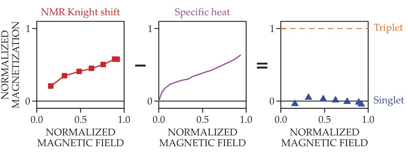 Convincing new evidence that extended beyond the 2019 finding came when the researchers compared two different measurements of the superconducting condensate’s magnetization: their own Knight-shift data and previously acquired observations of the specific heat of a high-quality SRO crystal. Specific heat in that system is sensitive only to quasiparticles that are produced in the superconducting state. As figure