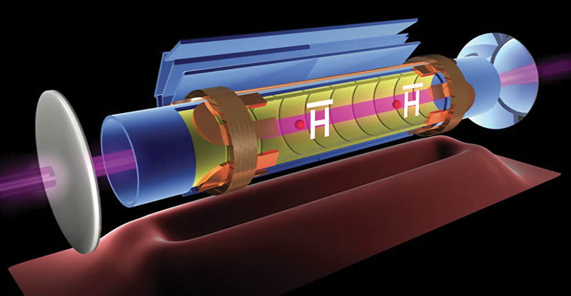 And that’s the easy part. “Making cold antihydrogen, so we can trap it, is really hard,” says Jeffrey Hangst, the ALPHA collaboration spokesperson. The atoms are charge neutral, so trapping them electromagnetically relies on their magnetic moment. In an inhomogeneous magnetic field, some of the atoms are drawn toward regions of lower field, so the team’s magnetic trap, with low field in the middle and high field around the edges, serves to confine the atoms—provided their energies are lower than 0.5 K. In ALPHA’s first successful trapping of antihydrogen in 2010, the researchers trapped just 38 atoms across 335 trials, and they held onto each trapped atom for a fraction of a second. 2 They’ve since refined the experiment to trap an average of 14 atoms per trial and hold them for many minutes.