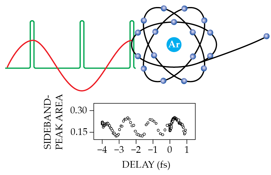 Agostini looked at the sideband intensities as a function of the delay between the HHG and IR waves. If the HHG isn’t actually a series of attosecond pulses but rather an incoherent XUV emission smeared out over the whole IR wave period, then adjusting the delay wouldn’t make any difference—the sideband intensities would always be the same. Because, instead, the sideband intensities oscillated, Agostini inferred that the HHG is organized into a series of discrete pulses. By analyzing the oscillations quantitatively, he concluded that the pulses were 250 attoseconds long.