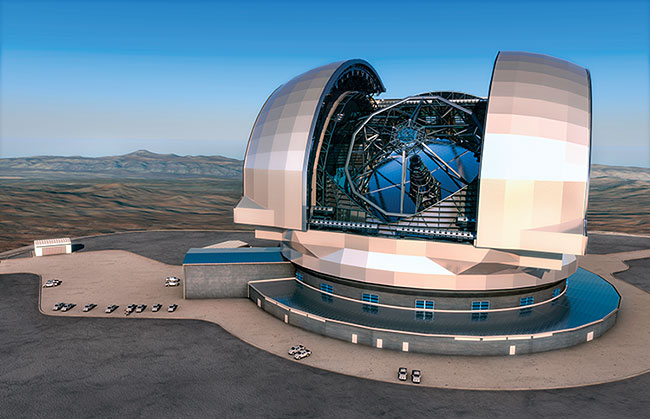 The European Extremely Large Telescope is under construction on Cerro Armazones, Chile. (Artist’s conception courtesy of ESO/L. Calçada.)