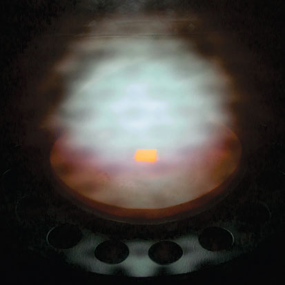 A diamond for industrial use as a phosphorus-doped n-type semiconductor crystal is grown in a microwave-assisted vapor deposition reactor at the Fraunhofer Center for Coatings and Laser Applications at Michigan State University.