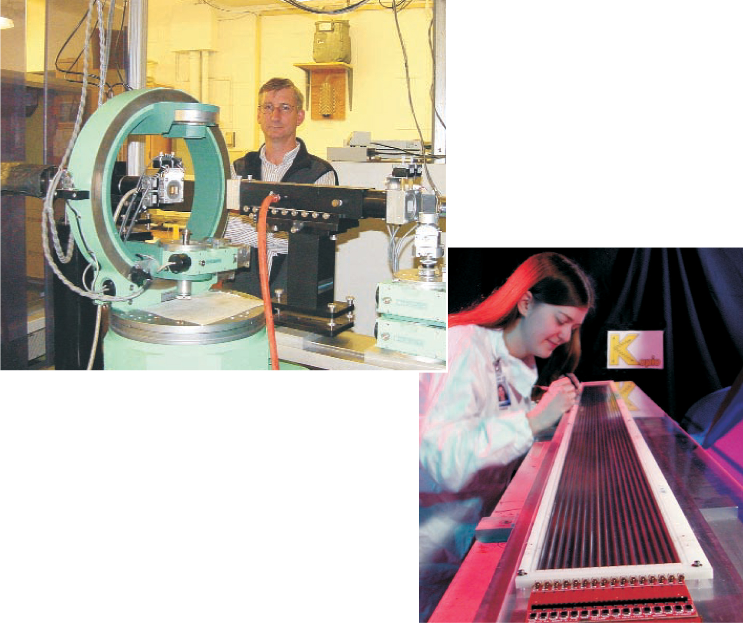 Infrastructure large and larger. Thanks in great part to the Canada Foundation for Innovation, Canadian researchers are getting new equipment, from diffractometers (above) for individual investigators to greater participation in international projects, such as KOPIO, the K meson decay experiment at Brookhaven National Laboratory. For KOPIO, Canadian physicists are building, among other things, a prototype drift chamber (right).
