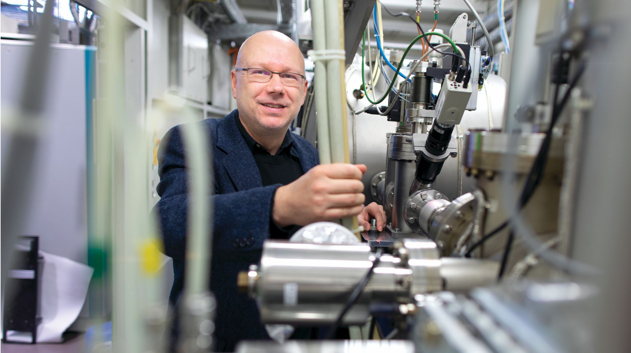 Manfred Weiss, director of the macromolecular research group at the BESSY II light source, stands beside a crystallography beamline.