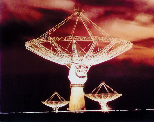 Three of the 30 antennas that make up the Giant Metrewave Radio Telescope near Pune, India. The telescope was built indigenously and is used by the international radio astronomy community.