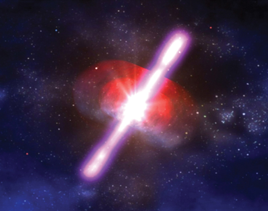 Gamma-ray bursts (GRBs) are the most violent explosions in the universe. Most of them are likely powered by jets of relativistic particles that are launched from dying stars as they collapse into a compact object such as a black hole. They are named for their initial blast of high-energy radiation, but GRBs can glow for days, emitting radiation across the electromagnetic spectrum. Studies of the linear polarization of GRB light provide information about the magnetic field in the jet and help clarify jet geometry. Now, a collaboration led by Klaas Wiersema of the University of Leicester in the UK reports having observed circularly polarized optical light in the radiation of a GRB detected on 24 October 2012. The strength of the signal, measured a few hours subsequent to the initial burst, in the afterglow phase, was orders of magnitude above what simple models predict. Scattering from dust can convert linearly polarized light into the circularly polarized variety, and the Wiersema team considered that possibility as a source for their signal. They concluded, however, that the scattering processes capable of generating the circularly polarized light they measured would also affect linearly polarized light in a manner inconsistent with their data. Models of GRBs generally assume that the electrons in the shocked ambient material responsible for the afterglow have velocities that are isotropic with respect to local magnetic field lines. Theorists recognize that one way to get circularly polarized light in a GRB is to relax that assumption. But they have yet to craft a convincing model that incorporates anisotropy. (K. Wiersema et al., Nature 509, 201, 2014, doi:10.1038/nature13237