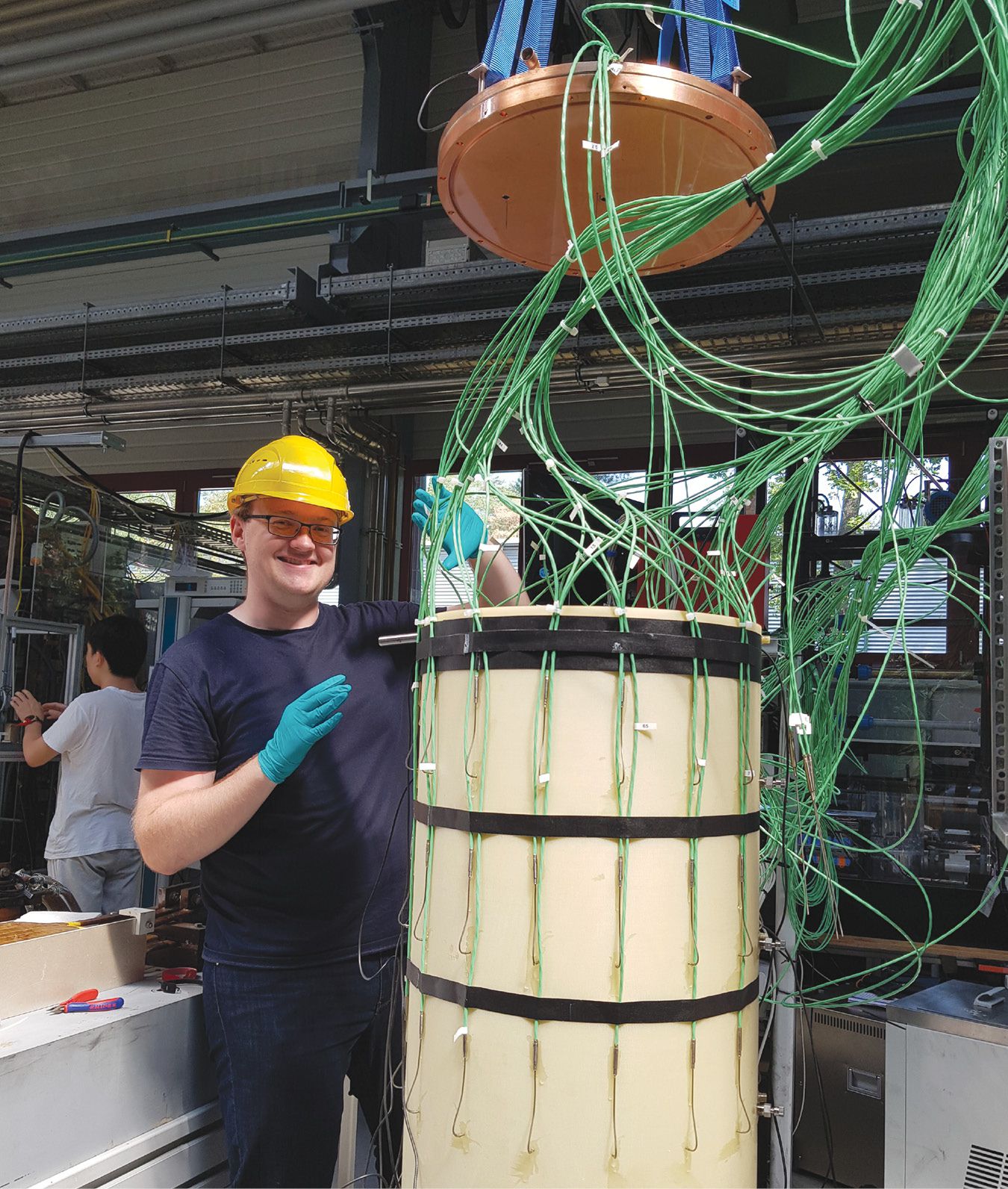 Felix Schindler, a PhD student at the Helmholtz-Zentrum Dresden-Rossendorf, assembles a cylindrical drum to be filled with liquid metal for turbulent convection experiments. (Photo by Tobias Vogt.)