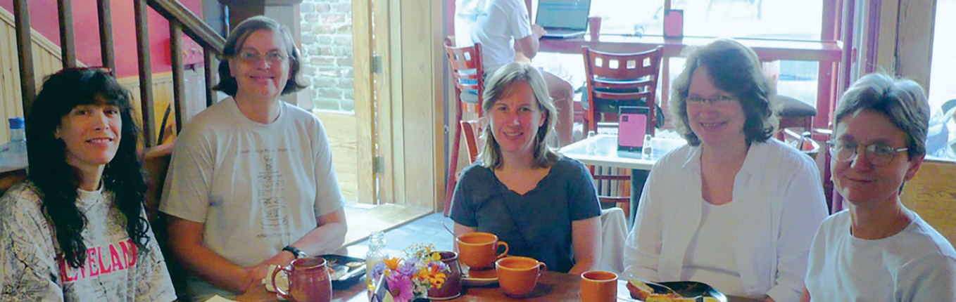The first NSF-funded mutual mentoring group in physics continues long after the money ran out. The five members were all full professors at liberal arts colleges. From left, Amy Graves of Swarthmore College, Barbara Whitten of Colorado College, Anne Cox of Eckerd College, Cindy Blaha of Carleton College, and Linda Fritz of Franklin & Marshall College.