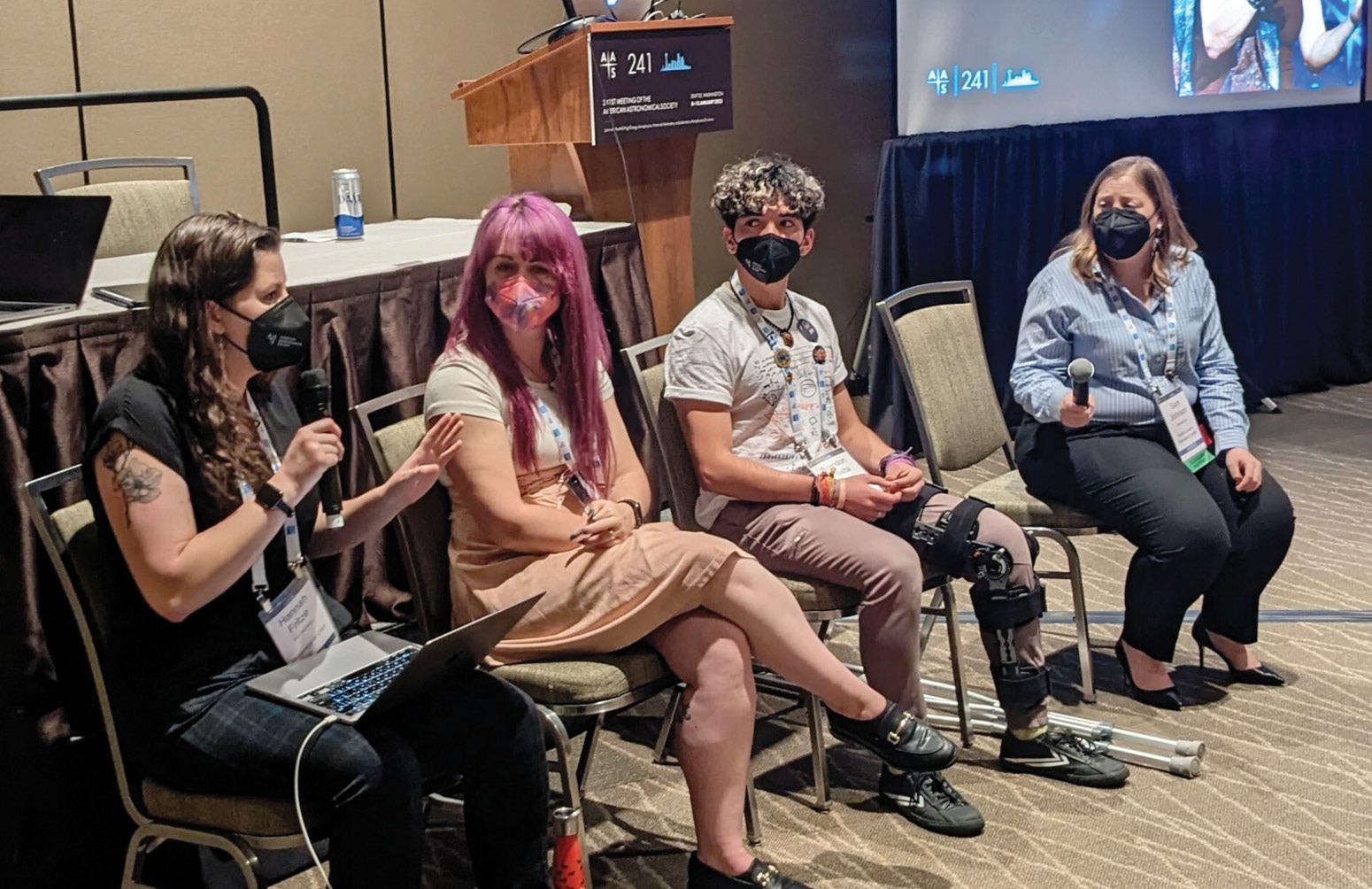 Neurodiversity in astronomy was explored at a well-attended session at the January meeting of the American Astronomical Society in Seattle, Washington. The panel members—(from left) Hannah Fritze, Jessica Schonhut-Stasik, Brandon G. Villalta Lopez, and Samantha Johnson—aim to continue to work for acceptance and accommodations in science.