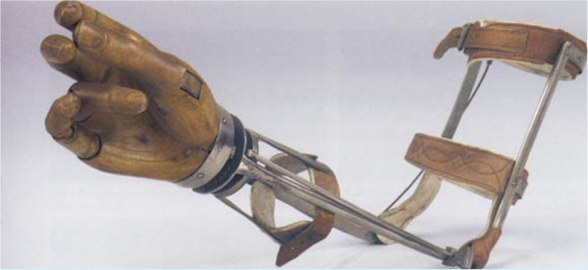A well-worn prosthetic arm. Some users prefer an old basic design, like this one, rather than a more modern device.