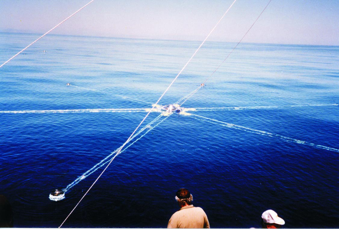 A third underwater neutrino project, the Italian Neutrino Mediterranean Observatory (NEMO), coordinates with ANTARES to look ahead to a km3-scale detector. “The optimal characteristics for … optical, sedimentation, and oceanographical properties of water were found in Capo Passero,” says NEMO spokesman Emilio Migneco, who is director of the Italian National Institute for Nuclear Physics’ Laboratori Nazionali del Sud in Catania, Sicily. Accordingly, the NEMO team has its sights set on a 3350-meter-deep site some 80 km off the shore of Siracusa, Sicily.