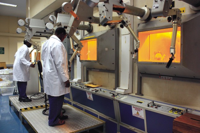 Technicians at NTP Radioisotopes, a subsidiary of the South African Nuclear Energy Corp, preparing molybdenum-99 in hot cells at the production complex.