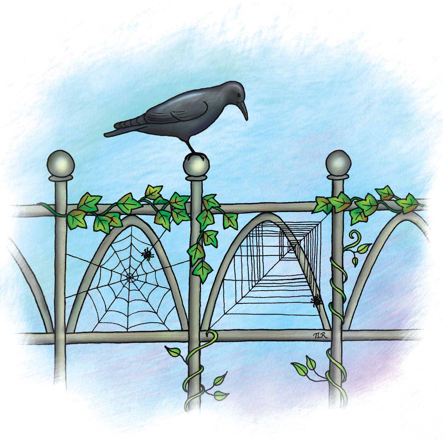 Chaos hides in ecological systems. Chaotic dynamics are characterized by an extreme sensitivity to initial conditions and unpredictable long-term behavior. Here, they are represented by the so-called cobweb plot—playfully rendered in the right spiderweb—which is a simple model of chaotic population growth. Although ecological chaos was deemed rare in the 1990s, a new study suggests that, actually, about a third of populations are chaotic. (Illustration by Tanya Rogers.)