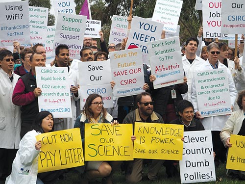 Scientists protest deep cuts in the budget of Australia’s Commonwealth Scientific and Industrial Research Organisation.