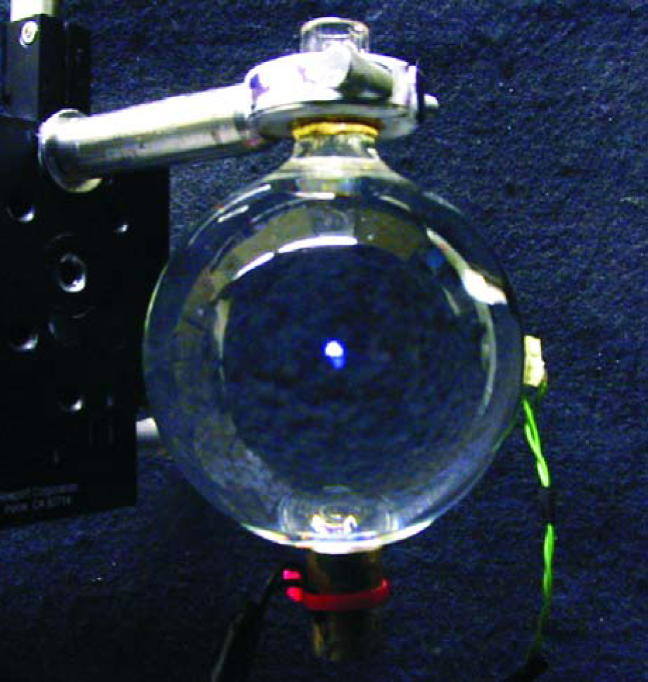 Figure 1. A bubble of argon in sulfuric acid glows brightly in the experimental flask.