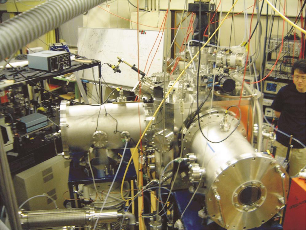 Figure 1. Crossed-beam ion imager at the Institute for Molecular Science in Okazaki, Japan. The large cylinders house the beams. The imaging equipment sits on top of the apparatus.