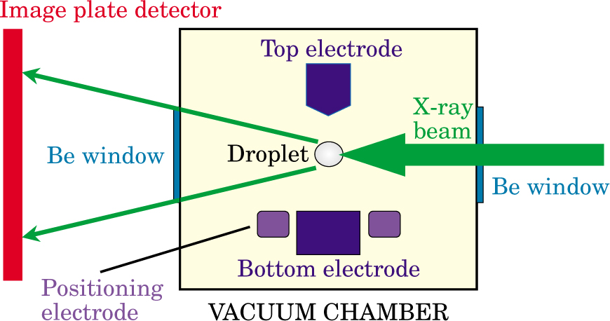 Figure 1. Schematic diagram of the electrostatic levitation chamber installed in an x-ray beamline.