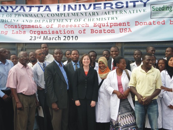 Last spring, Seeding Labs sent Kenya’s Kenyatta University some $750 000 in equipment, including glassware and other consumables, a gas chromatograph, two HPLCs, a UV spectrophotometer, and a mass spectrometer—“the only one in Sub-Saharan Africa,” says Kenyatta chemist Nicholas Gikonyo. “When I was introduced to Nina [Dudnik] I had started the department of pharmacy,” he says. “I had made a strategic plan. The only thing we didn’t have was equipment. Down here, even getting small things like test tubes is a big challenge.” To cover the costs of testing, packing, and shipping the cargo, and as a sign of commitment to maintain the equipment, the university paid about 10% of the cost of buying the same equipment new.