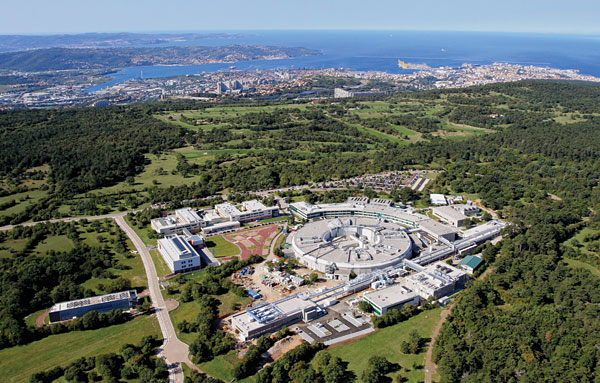The three beamlines at the Trieste FEL are dedicated to spectroscopy of gases and beams of mass-selected clusters of atoms or molecules; coherent dynamic imaging of such things as nanostructures and biological systems; and inelastic and elastic scattering experiments. Two additional beamlines for magnetic dynamics and pump–probe experiments are planned. The experimental hall is shown in the bottom photo; the top one shows an aerial view of the site.