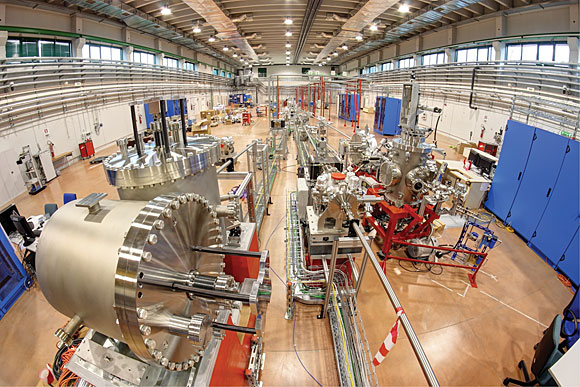 A free electron laser (FEL) in Trieste, Italy, began producing 40- to 150-fs pulses at soft x-ray and extreme-UV wavelengths last year, and commissioning began this fall on a second FEL that will reach shorter wavelengths. Based on a conventional linac operating at 10 Hz and 1.2 GeV, the €160 million ($210 million) FERMI@Elettra source is the first user facility to implement seeding. The result: high-gain light pulses that are coherent; are stable in intensity, photon energy, and bandwidth; and have tunable energy and polarization that can be switched from linear to circular.