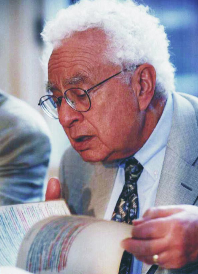 Murray Gell-Mann peruses James Joyce’s blue-and-red handwritten notes for Ulysses.