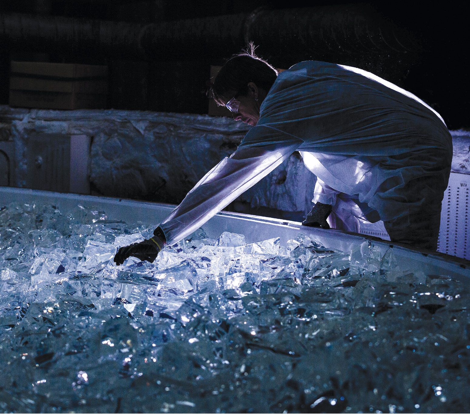 Chunks of low-expansion glass are placed in a mold for casting one of seven segments, each 8.4 meters across, that will form the primary mirror of the Giant Magellan Telescope in Chile. This work is being done at the University of Arizona.