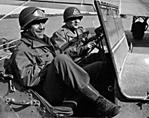 Samuel Goudsmit at the wheel in Germany in April 1945, while serving on the Alsos mission.