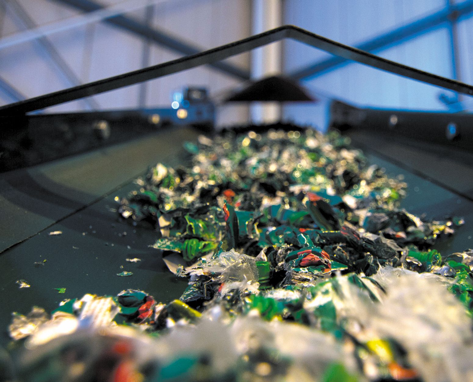 Shredding is an early step in the process of separating plastic from aluminum in metallicized packaging. Enval, a company founded in 2005 after more than a decade of research at the University of Cambridge, uses microwave-induced pyrolysis to separate the materials for recycling.