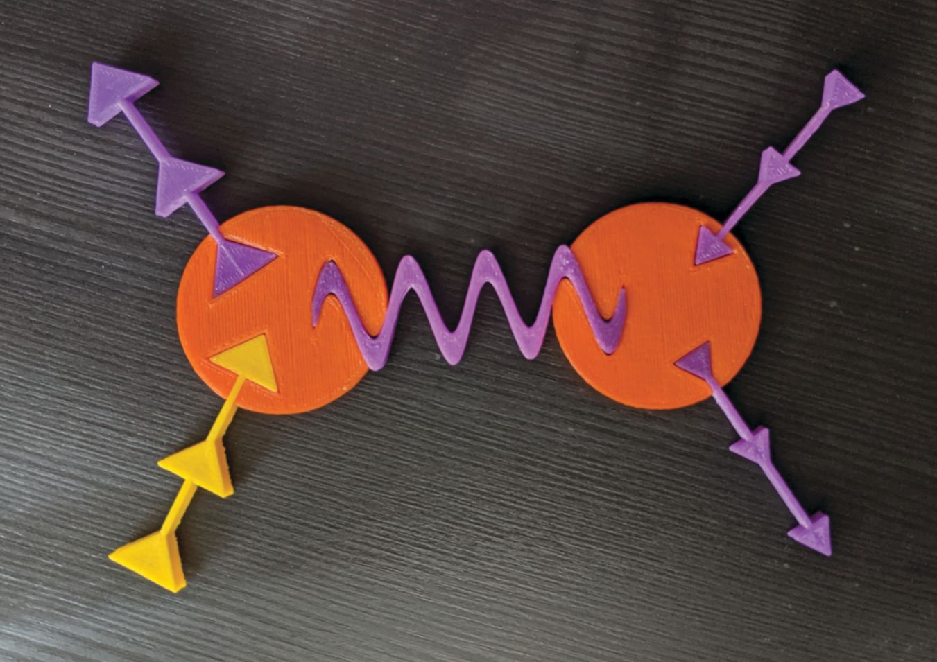 Snap-together, 3D-printed Feynman diagrams got their start in 2017 at a public Science Hack Day in San Francisco, where Flip Tanedo (assistant professor of theoretical physics at the University of California, Riverside), Matt Bellis (associate professor of physics at Siena College), and Willow Hagen (a graduate student at Carnegie Mellon University) made prototypes. In search of a teaching tool, the hackers were inspired by Tinkertoy.