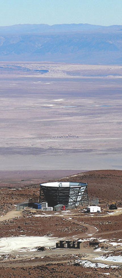 Figure 1. The Atacama Cosmology Telescope, funded by NSF, is a 6-m telescope in the Atacama Desert in Chile. Its remote location and high altitude (more than 5000 m above sea level) minimize atmospheric interference and allow it to collect high-resolution data on the cosmic microwave background.