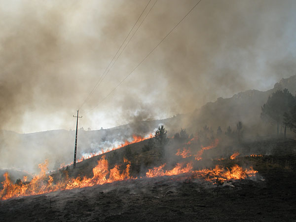 Wildfires around the planet burn an average of 3.7 million km2 of vegetation annually and can leave landscapes scorched, barren, and vulnerable to erosion and flooding. According to the literature, the more vegetative fuel, the more intense the fire, the hotter the soil, and the more severe the damage to fragile roots, seeds, and microbes. But that understanding is based on laboratory studies and prescribed burns in small fields. An experiment led by Cornell University’s Cathelijne Stoof, who at the time was working at Wageningen University in the Netherlands, now provides evidence that in more heterogeneous conditions the opposite may occur—the hotter the fire, the cooler the soil. To study the effects of landscape and fire dynamics on soil temperature, the group mapped a 0.1-km2 shrub-covered watershed in Portugal, installed 52 thermocouples throughout the region, and then set it ablaze. Although the most thickly vegetated areas burned at temperatures as high as 800 °C, topsoil in those areas remained below 100 °C. The soil temperature remained low, the researchers argue, because large air-temperature gradients increased the upward transport of heat and dense vegetation contained the most moisture. Dry, sparsely vegetated areas that burned less intensely, in contrast, suffered the greatest damage; their soil reached more than 300 °C in places. Managers of fire-prone ecosystems could use the results to decide how, where, and when to set off controlled burns. (C. R. Stoof et al., Geophys. Res. Lett., in press, doi:10.1002/grl.50299
