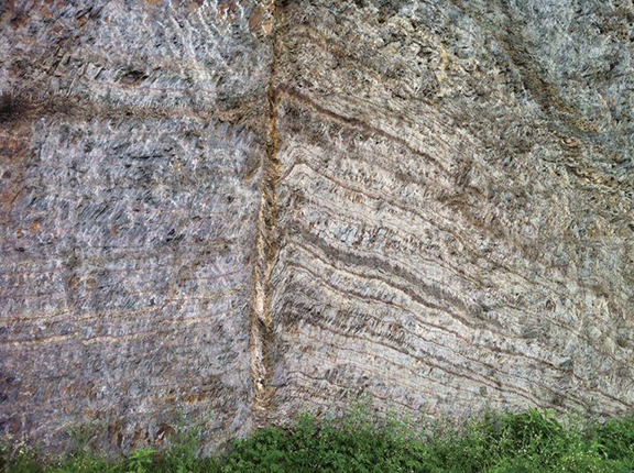 When two rock formations slide past one another during an earthquake, the friction generated melts the rock to create a liquid layer that eases further movement. At 1000–1550 °C, interface temperatures during sliding exceed the melting points of most minerals. Even so, examination of exhumed faults does not reveal evidence of the uniform, equilibrium melting that occurs at high temperature. In the case of quartzite rock (shown in the figure), the melting is especially puzzling. Minority components in the quartzite that have lower melting temperatures than their host will melt and resolidify. But so too does some of the quartzite, whose melting temperature is 1726 °C.