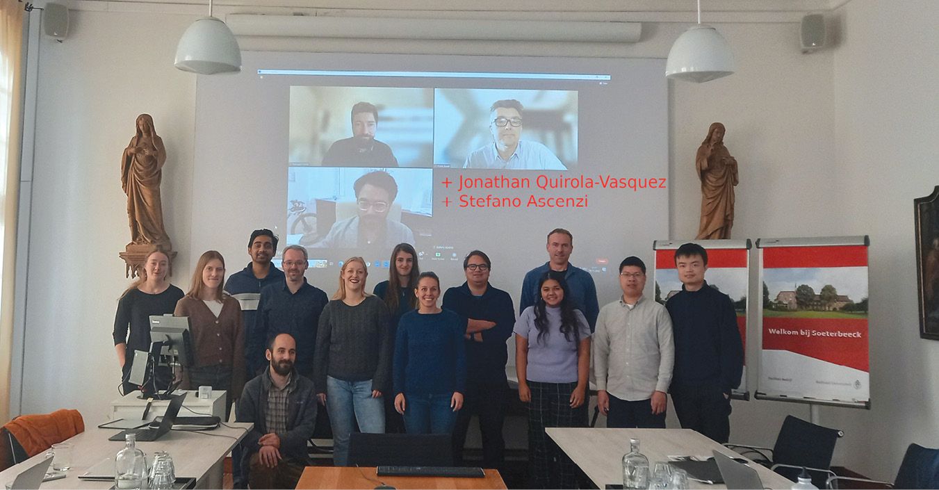 Scientists attend a small astronomy conference on fast x-ray transients hosted at Radboud University in Nijmegen, the Netherlands, in November 2022. The remote attendees were from Chile, Israel, and the UK. (Courtesy of Peter Jonker.)