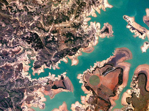 A reservoir in Brazil imaged by Planet Labs on 31 July 2014. A comparison of this image with one taken a year earlier by the US Geological Survey’s Landsat shows that the water level has dropped; several such comparisons are on the company’s website.