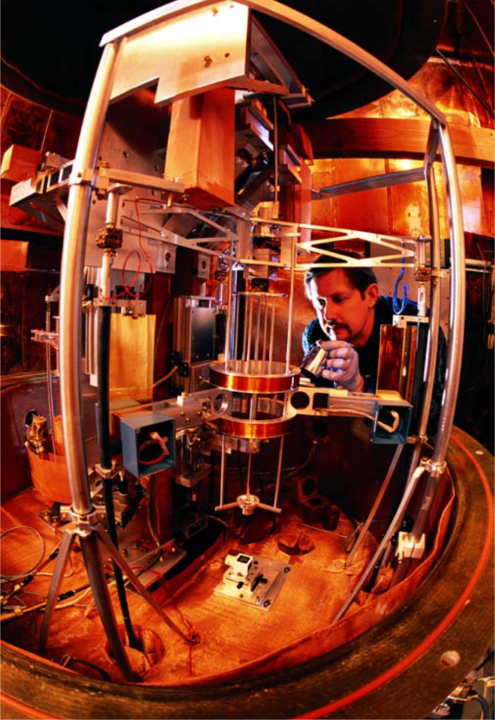 NIST physicist Richard Steiner positions a mass standard at an agency lab designed to help redefine the kilogram in terms of current and voltage.