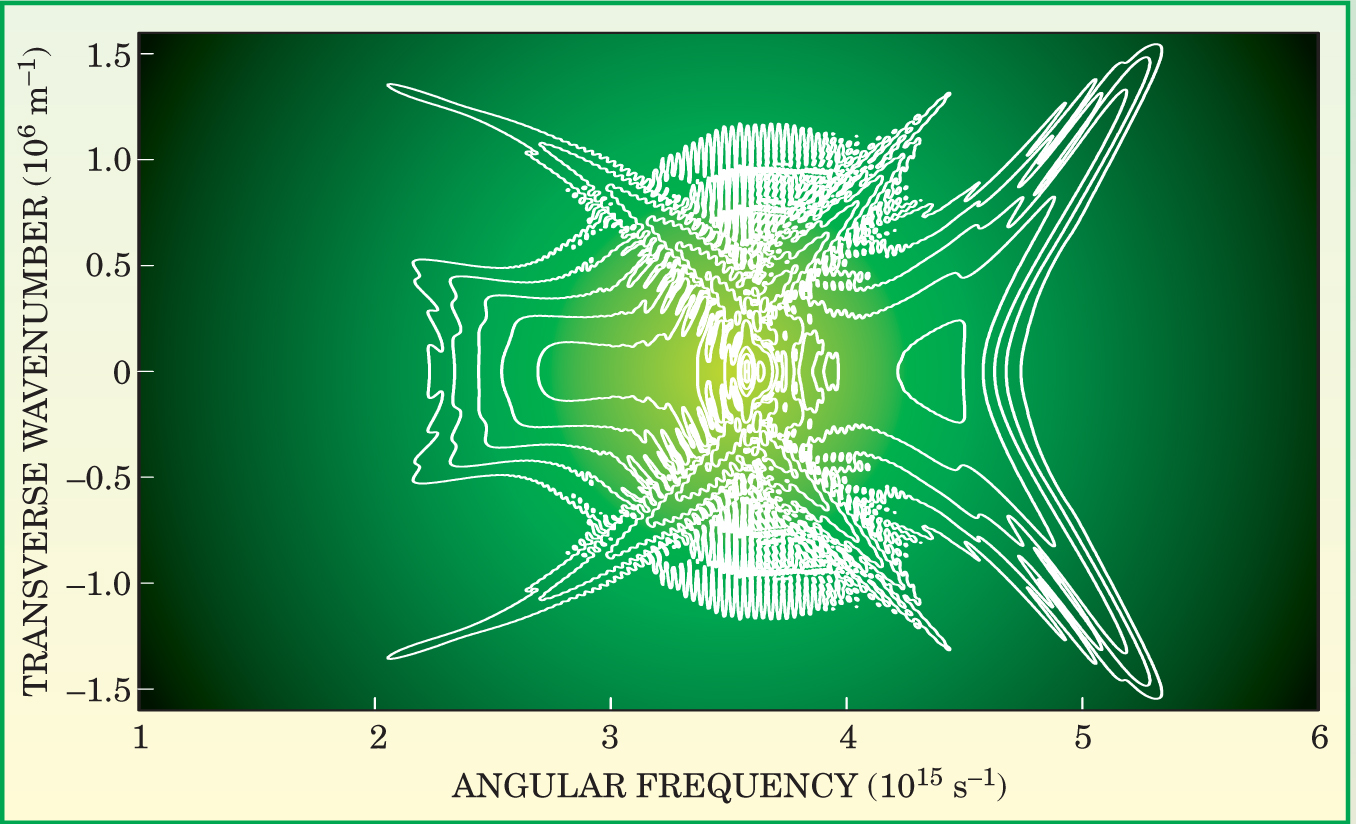 Lu and Greenleaf’s superposition scheme, which was published in 1992, works because the chromatic dispersion of ultrasound in water is negligible. That’s not the case for light in most condensed media. In 1997, Heiki Sõnajalg, Margus Rätsep, and Peeter Saari of the University of Tartu in Estonia figured out how to counter chromatic dispersion and create optical X-wave pulses. 6