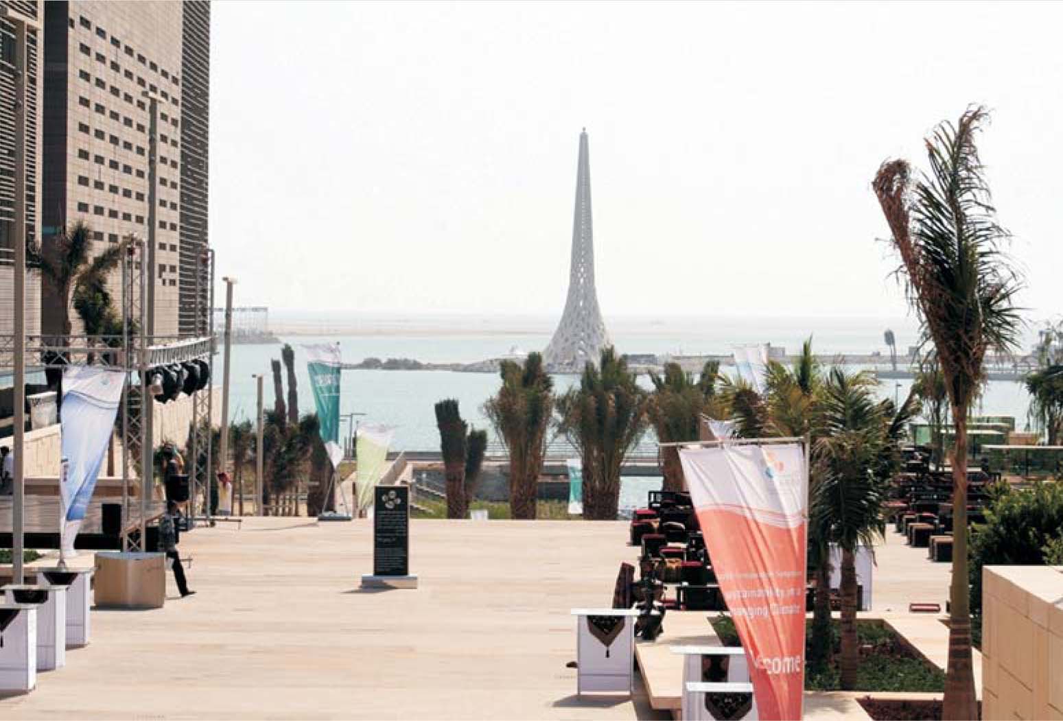 Desert rising. About 3000 people attended the inauguration (above) in Saudi Arabia of a new university that went from paper to people in less than three years. The 60-meter-tall beacon in the university’s Red Sea harbor (below) is inspired by traditional Arabic art and architecture while also nodding to the present with individually unique bricks that form a geometric pattern representing carbon, a basic building block of life.
