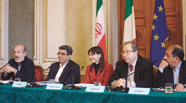 Scientific exchanges and the building of an Iranian beamline at the Elettra synchrotron were discussed at a November 2016 meeting in Trieste, Italy. Plans for the beamline are now on hold because of the reduced value of Iranian currency. From left: Iranian physicist Reza Mansouri; Vahid Ahmadi, Iran’s deputy minister for research and technology; Italian politician Debora Serracchiani; Alfonso Franciosi, head of the Elettra synchrotron; and Javad Rahighi, director of the Iranian Light Source Facility.