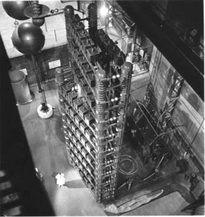 The photos, taken in the 1940s and 1950s by photographer Robert Doisneau, began as part of a Vichy government propaganda effort to glamorize French intellectual life. Many of the nearly 100 photos of the Nobel Prize-winning couple and their laboratories “give a feeling of fantastic or surrealistic activities,” says curator Ginette Gablot. “Doisneau’s photos show the development of accelerators and the transformation of labs as instruments got larger and more diverse.” Also on display are contemporary comic drawings inspired by science, video clips, scientific instruments, and a cyclotron log book from the time of Germany’s occupation of France. Both the photo above and part of the 12-m-high, 3-MV impulse generator it depicts are in the exhibit.