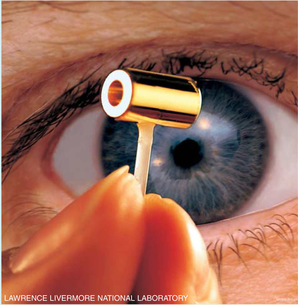 A capsule containing fusion fuel, called a hohlraum, is about the size of a pencil eraser. The National Ignition Facility’s laser beams will enter through the openings at each end to produce x rays that will implode the fuel, causing it to undergo fusion.