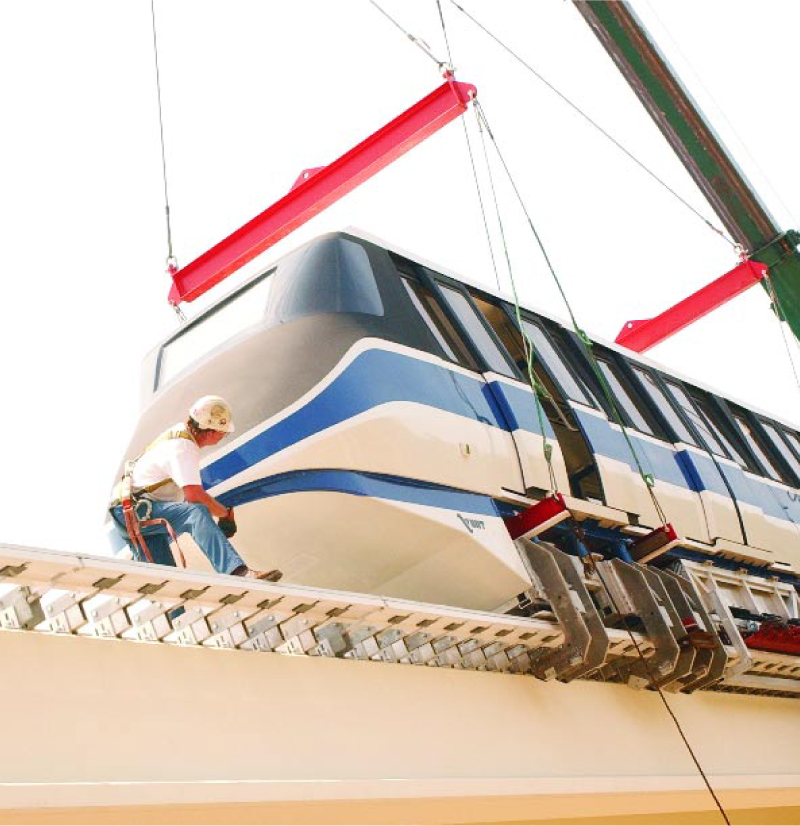 The first Maglev train, based on a decommissioned light rail car, is installed onto the track at Old Dominion University.